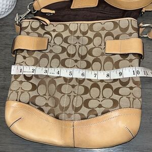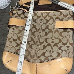 COACH 3574 Sufflette Cloth + Leather Shoulder Bag Crossbody Tan Jacquard. In Terrific Preowned Condition.
