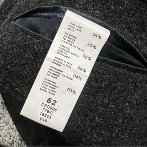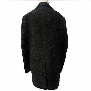Exibit dark charcoal gray wool and alpaca blend overcoat with button front closure, two front pockets, and fully lined