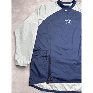 Classic Nike team-issued pullover windbreaker featuring Dallas Cowboys embroidered star logo on front chest and stitched NFL shield on back neck.