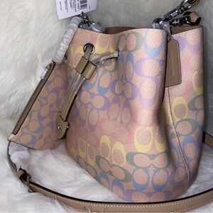 Coach Rowan Bucket Bag In Rainbow Signature Canvas New