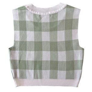 SHEIN Green & White Checkered Sweater Vest Cropped Top Size Small
