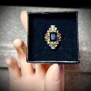 Brilliant~Sapphire~Diamond Cocktail Ring~ simulated gemstones~in 18k plate