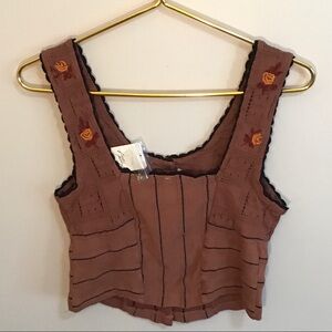 Free People Brown Crop Top with Floral Embroidery
