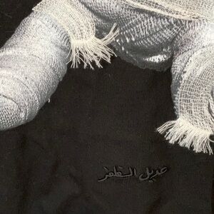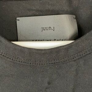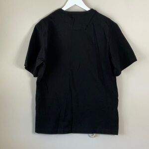 Short sleeve cotton jersey t-shirt in black. Rib knit crewneck collar. Black and white printed graphic featuring off-white mesh trim and tonal embroidered text at front. Tonal stitching.