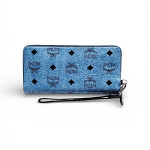 💥MCM💥 Logo Studded Leather Wallet in Munich Blue