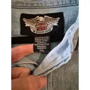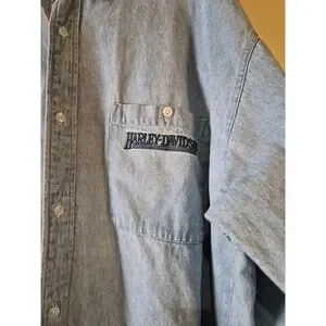 90s denim button down Harley Davidson shirt with embroidery on the pocket