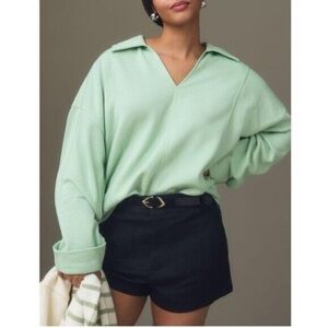 Pilcro x Anthropologie Johnny Collar Pullover In Light Green Women's Size XS Petite Collared with Drop split hem Oversized