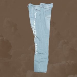 Pretty Little Thing Mom Jeans Women's Size 18 High Waist Ripped Light Wash NEW