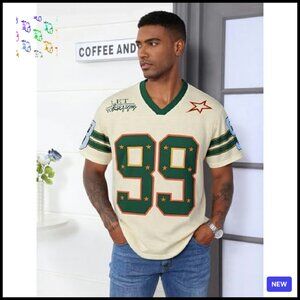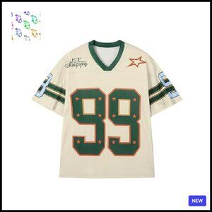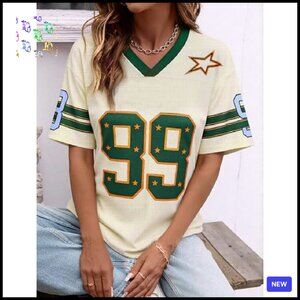 Oversized V-Neck Jersey Tee Y2K Streetwear Graphic Top Summer Fall
