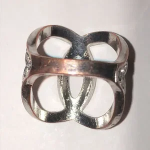 Size 7 Silver Tone CZ Rhinestone Open Boho Statement Ring