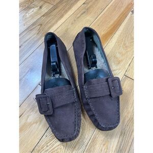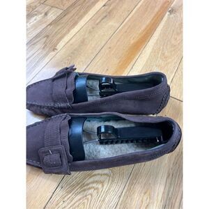 Womens UGG Slip On Driving Mocs Brown Suede Shearling Lined Size 8.5