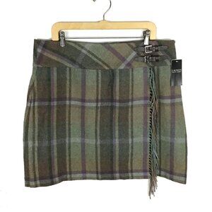 Lauren Ralph Lauren Plaid Fringe Trim Tweed Mini Skirt