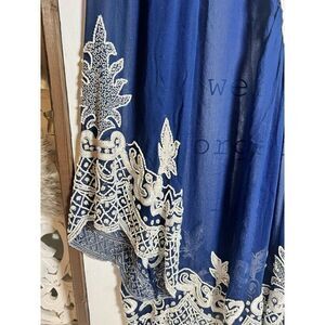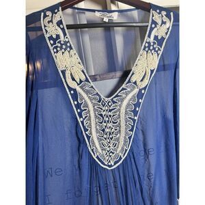 Faust Sheer Bohemian Blue white sleeve Beaded cuffs & collar size XL Or 2. Dd
