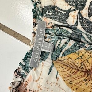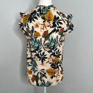 Keywords: floral print top, smocked neckline blouse, button front top, bohemian top, womens blouse, cap sleeve top, daniel rainn, casual top, spring top, summer top, floral blouse, botanical print, relaxed fit, vacation top