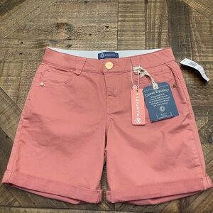 Chic coral shorts by Democracy. Perfect for casual wear. Features rolled cuffs and classic design.