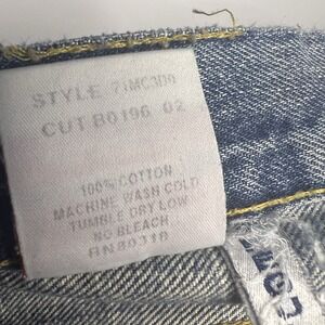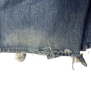 These jeans are distressed, have a raw grunge hem, and have some light staining. Please view photos for condition and measurements.