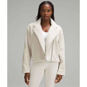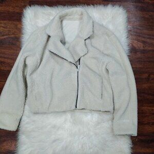 Lululemon Athletica Womens Small Textured Fleece Collared Cropped Jacket Bone