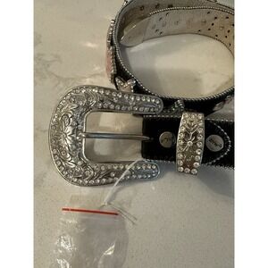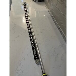 The BHW Ladies leather Cowgirl Rodeo Rhinestone Bling PINK Hearts belt is a stylish accessory for women who love the Western, rodeo, or cowgirl theme. Made of leather with rhinestone accents and a pink color, this adjustable belt features a buckle and is of one size fits most. The belt is adorned with heart-shaped patterns, making it a fun and trendy addition to any outfit. Perfect for adding a touch of bling to your look, this belt is both fashion-forward and functional, making it a must-have for any cowgirl-inspired wardrobe.