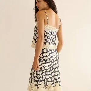 In buttery silk satin graced with our Fleurs d’Anemone print, the ‘90s-inspired Loure Top features ultra-skinny adjustable spaghetti straps and a slightly cropped, boxy silhouette. Intricate floral lace trims the square neckline and hem, and soft darting at the bust lends structure.