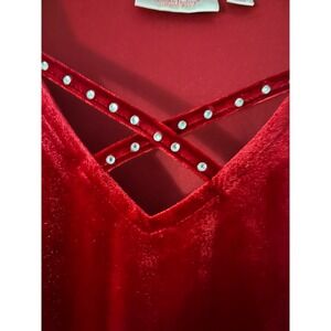 Quacker Factory Tunic Womens 1X Red Lattice Rhinestone Accents Holiday Party