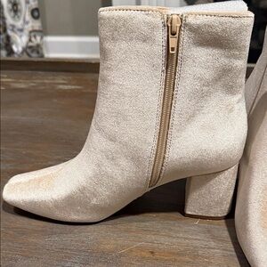New Journee Womens Hazara Square Toe Block Heel Ankle Booties Tan Velvet 10