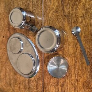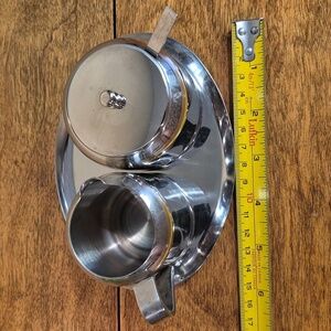 VINTAGE Shiny Chrome Cream and Sugar Set With Spoon And Tray