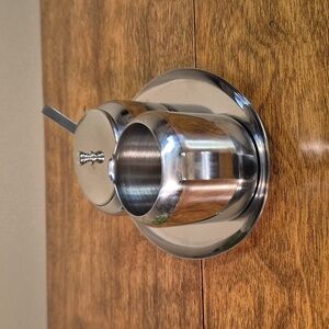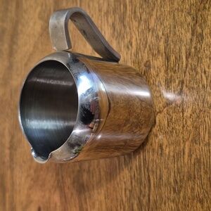 Enhance your kitchen with this creamer and lidded sugar bowl set. The sugar bowl comes with a small stainless spoon. The set is displayed on a small tray. This set is perfect for serving your guest coffee or tea.