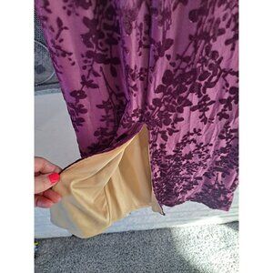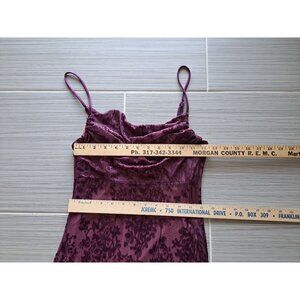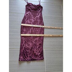 Y2K Purple Velvet Burnout Floral Dress Windsor Cowl Neckline Spaghetti Straps M
