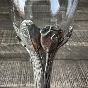 Daffodils and tulips adorn this set of four 6oz signed Seagull Pewter wine glasses from 1990