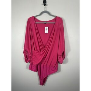 Torrid Bodysuit Womens 3X 22/24 Pink Studio Knit Surplice Top Stretch