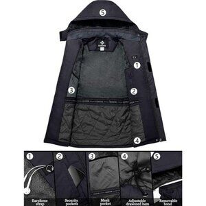 Windproof Winter Coat:1.Adjustable Velcro cuffs and stretchable glove with thumb hole help seal in warmth;2.Detachable storm hood with adjustable drawstring, Velcro, stand collar, and full zipper closure, all the well-designs keep out the wind effectively;3.Wear-resisting soft shell is highly wind resistant and warm.