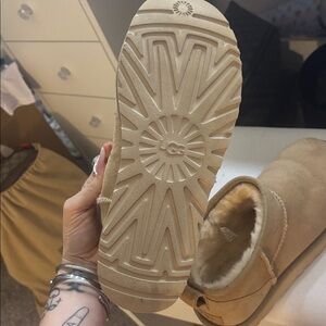 I have a pair of mini UGGS worn maybe 3 times. They’re super comfortable and very true to size. They’re a size 8 in women’s I just don’t wear them a lot because I live in South Florida and I don’t need them as much as I thought I would cause it never gets cold here they have the UGG logo on the back and they’re the mini ankle ones. They’re very popular and trendy. This particular style bought from Nordstrom‘s paid $160 for them. No low ball offers pls! Ty 🖤✨