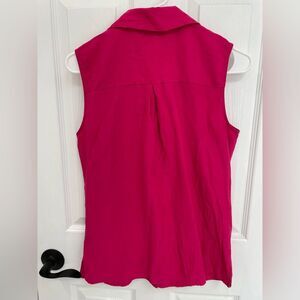 Karen Scott Hot Pink Magenta Sleeveless Botton Down Collared Shirt Womens Size S