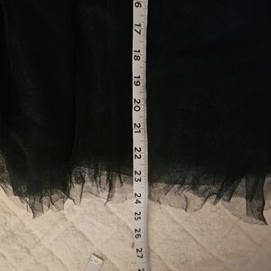 high waist knee length four layer mesh skirt with slip (not see-through) size medium (runs large)great for parties, holidays layering. work casual and night out