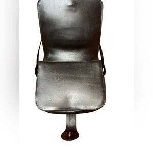 This is a gorgeous vintage black leather Gucci, shoulder bag with gold plated hardware, including a large snap closure logo of the interlocking geez. This bag has been authenticated and the certificate is included in photos. This bag measures 10 inches wide 8 inches tall 3 inches deep with an adjustable shoulder strap That adjust from 10 inch to 12 inch drop. This is a classic timeless Gucci bag purse. Some light scratching on the leather on interior and exterior and some tarnish on the gold plated hardware. Otherwise in excellent condition with beautiful structure and quality leather.