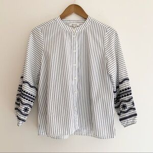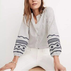 Madewell Striped Embroidered Button Front Shirt Small