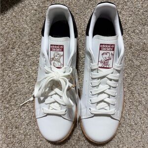 Classic Adidas Stan Smith sneakers. White with black accents and cork. Timeless design. I am groot from Marvel’s Guardian of the Galaxy. Size 7