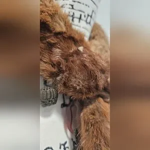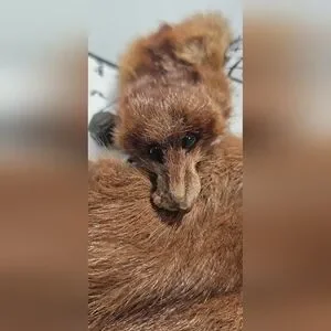 In good preloved vintage condition. There is a small bare spot on the nose, foot, and on the back by the white strip of fur. It's not noticeable unless pointed out. Please feel free to ask any questions.