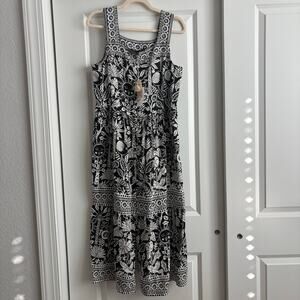 NWT Johnny Was Luciana Tank Dress Black White Sun Moon Floral S Boho Resort Linen