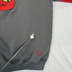 The Steady Hands Marceline Cat-Unisex Large Sweatshirt is a graphic print pullover featuring characters like Marceline the Vampire Queen, Finn the Human, and Jake the Dog from Adventure Time. Made of cotton fleece in a gray color, this relaxed fit sweatshirt is machine washable and suitable for all seasons. With a Crew Neck and hooded accents, this sweatshirt is perfect for fans of the cartoon series looking for comfortable and stylish activewear for activities like gym training, walking, or running.
