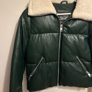 Levi's Green Puffer Jacket with White Sherpa Collar