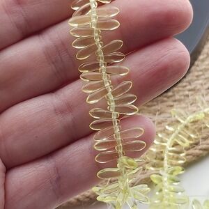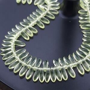 You'll receive 100 beads on a strand. Glass beads made in the Czech Republic. Nice glow in UV light. They are a light yellow-green color. Beads are approx 11x3MM.