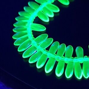 100pcs Czech Glass Dagger Beads, Uranium Glass, UV light reactive