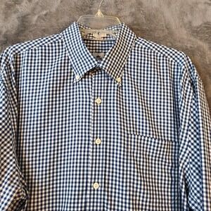 Peter Millar Shirt Men's Size XL Nanoluxe Easycare Gingham Dress Shirt. Dress Shirt Is in excellent pre owned condition. No holes, Stains or signs of excessive wear. Measurements are posted here. Know your size before purchasing, to avoid returns for fit. Please measure your shirt or pants. Shoulder seam to Shoulder seam 20" Armpit to Armpit 26" Collar to hemline 33" Collar to cuff ending 33"