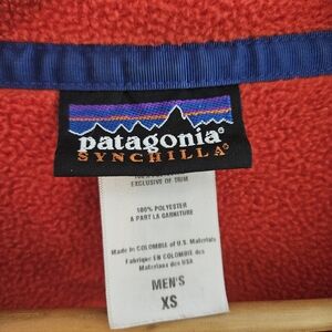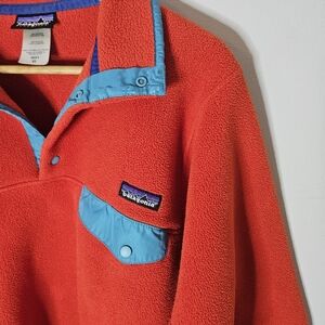 Patagonia Synchilla Fleece Pullover Snap T Red Coral Turquoise Accents Men's XS. excellent used condition.