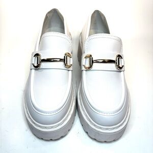 White leather chunky Steve Madden loafers. Size 36. Fit like a size 6/6.5. Excellent condition. Smoke and pet free home.