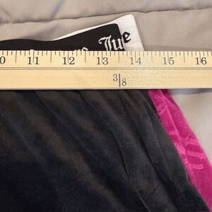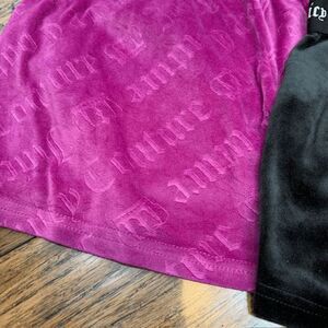 Juicy Couture 2 pc Velour Shorts Sleepwear Bling Logo Elastic Waist Size Medium. Excellent condition. See photos for details and unstretched measurements. One pair black with bling, one pair magenta pink with logos. Shop my closet and bundle multiple items for discounts and one shipping fee!
