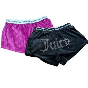 Juicy Couture 2 pc Velour Shorts Sleepwear Bling Logo Elastic Waist Size Medium