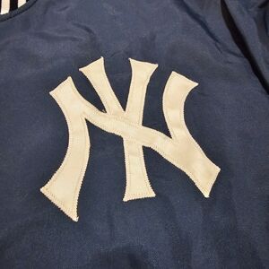 Show your team spirit with this stylish blue Yankees bomber jacket. Perfect for casual outings and game days.