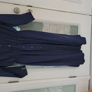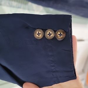 Vintage 80's Dresses Elisabeth Silk Shirt Dress Navy Blue Sz 16 Has Pockets